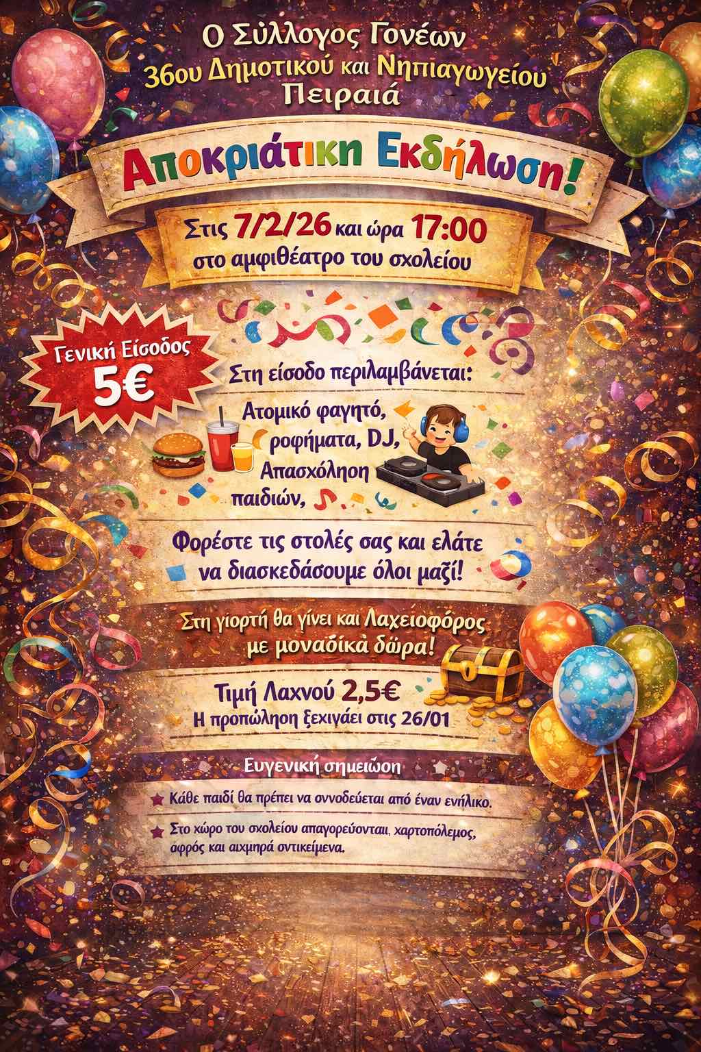 που οργανώνει για τα παιδιά και τους γονείς και θα γίνει το Σάββατο 07 Φεβρουαρίου, στo Αμφιθέατρο του σχολείου μας.